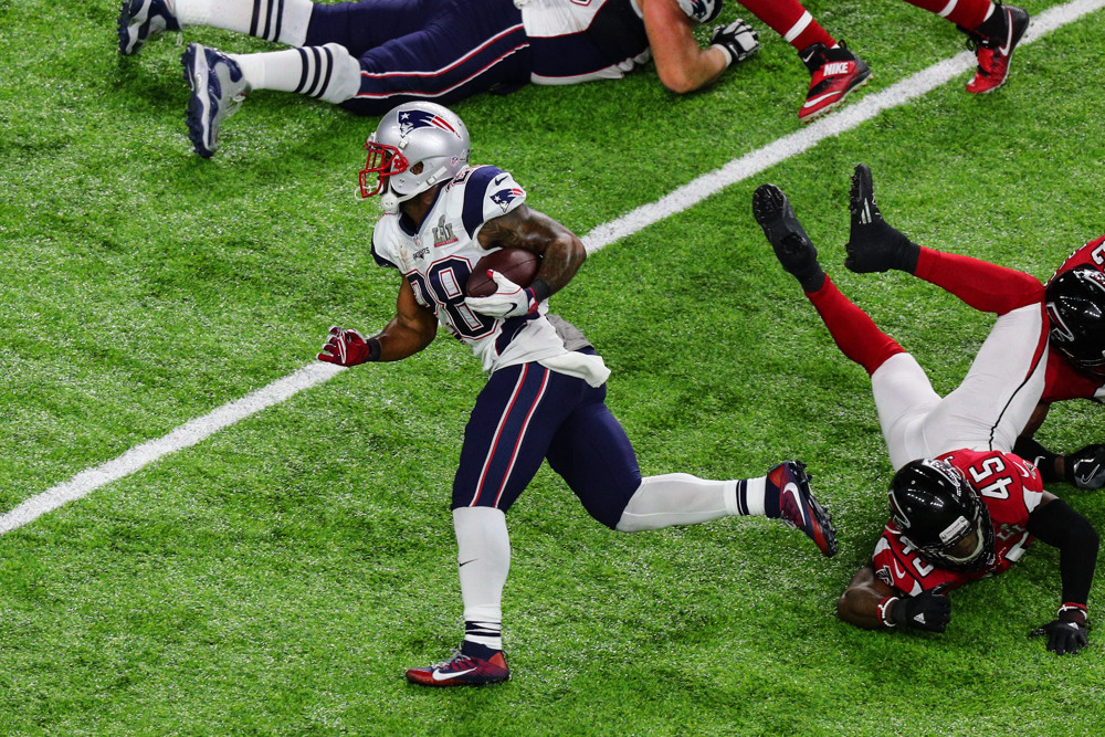 Brady threw for 466 yards and led multiple scoring drives in the fourth quarter, including a two-point conversion to tie the game at 28 with under a minute to go. It was the first Super Bowl to ever go to overtime. New England won the coin toss, drove down the field, and ended the game with a James White touchdown run.